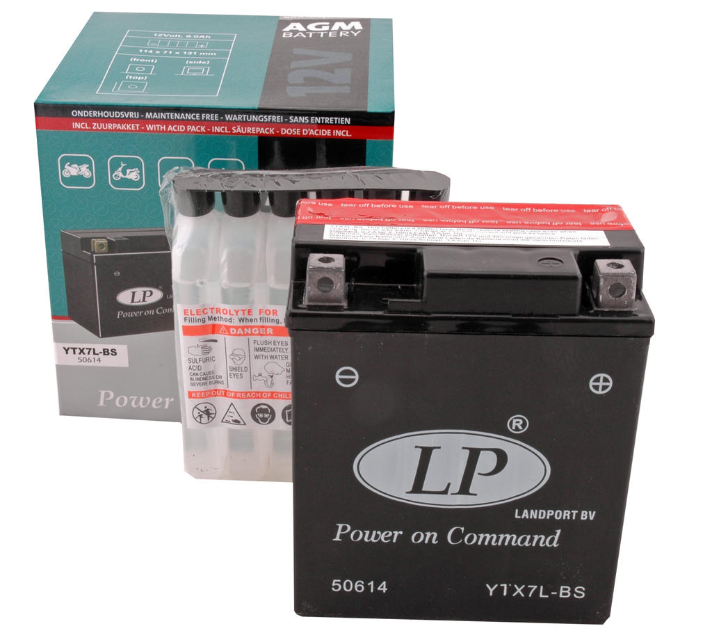 Landport YTX7LBS Onderhoudsvrije accu voor 50cc 4T-scooters (o.a. Vespa Primavera 4T / Sprint 4T – Piaggio Fly 4T – Honda Vision 4T – Peugeot Elystar) (114x71x131mm)