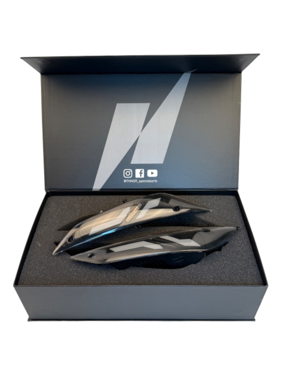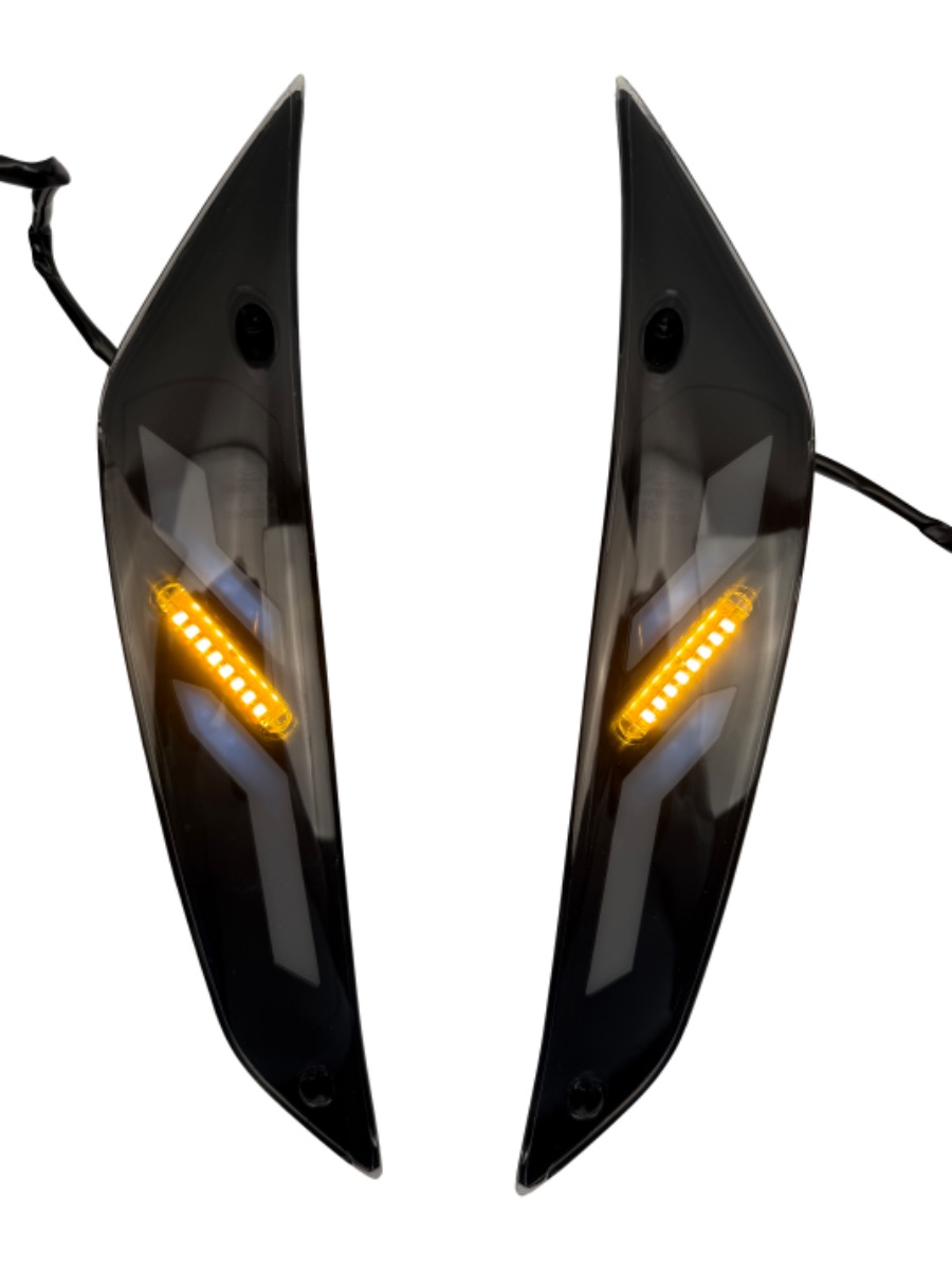 *NEW* Richtingaanwijzer / knipperlicht set voorzijde LED in zwart / smoke / getint met dagrijverlichting en SQ = sequentieel (Audi / Lexus lopende / flow / dynamic lichten) incl. alle montagematerialen| Piaggio Zip 4T