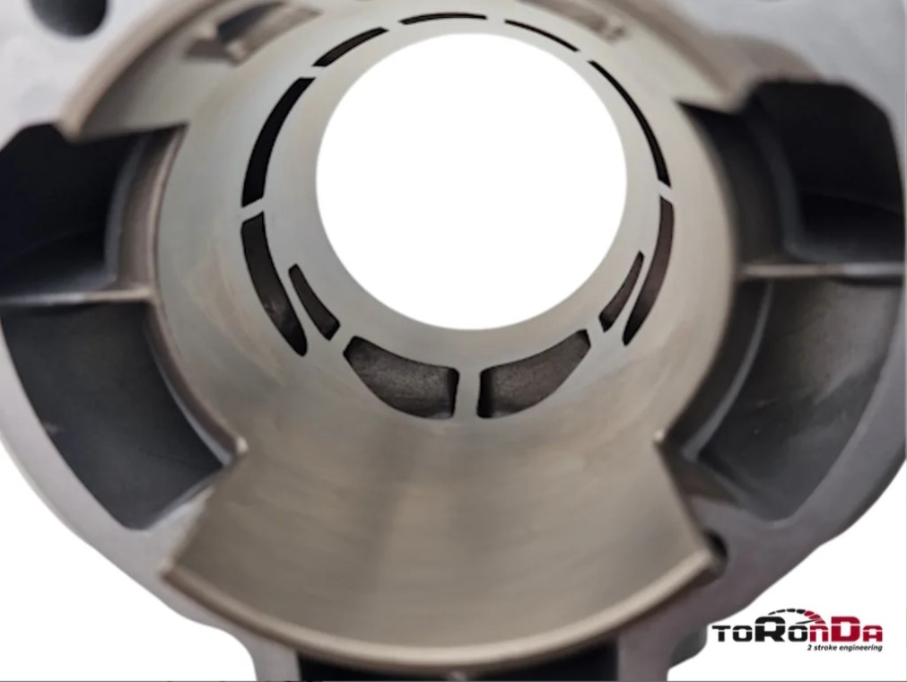 7 transfer ports and 4 part exhaust ports to eliminate the limits from the stock stud pattern.