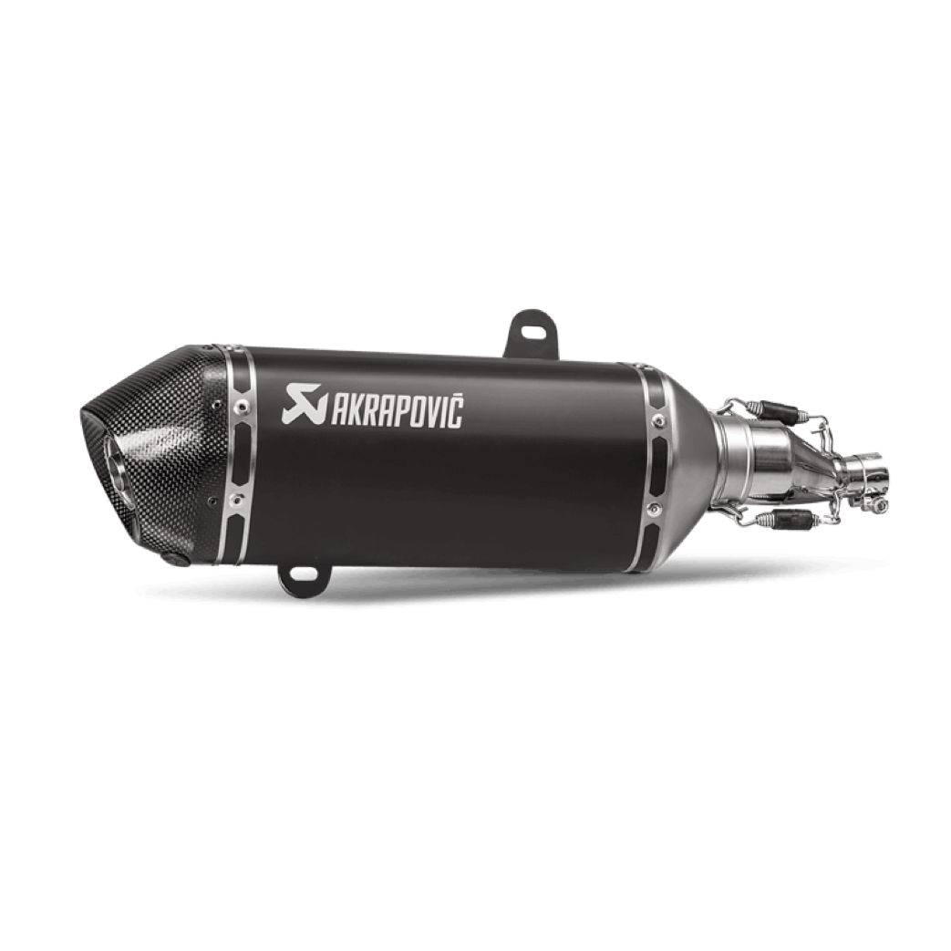 The Slip-On represents the first step in exhaust system tuning. It is simple to install and replaces a stock muffler. It also offers the best combination of price and performance. With the Akrapovič Slip-On system you will get more power, more torque, and less weight. The Akrapovič Slip-On system gives your scooter that unmistakable deep resonant Akrapovič sound. Special black muffler dramatically changes its visual appearance. Each product features Akrapovič’s finest carbon fibre end caps. EC type-approval is valid only when catalytic converter is installed.